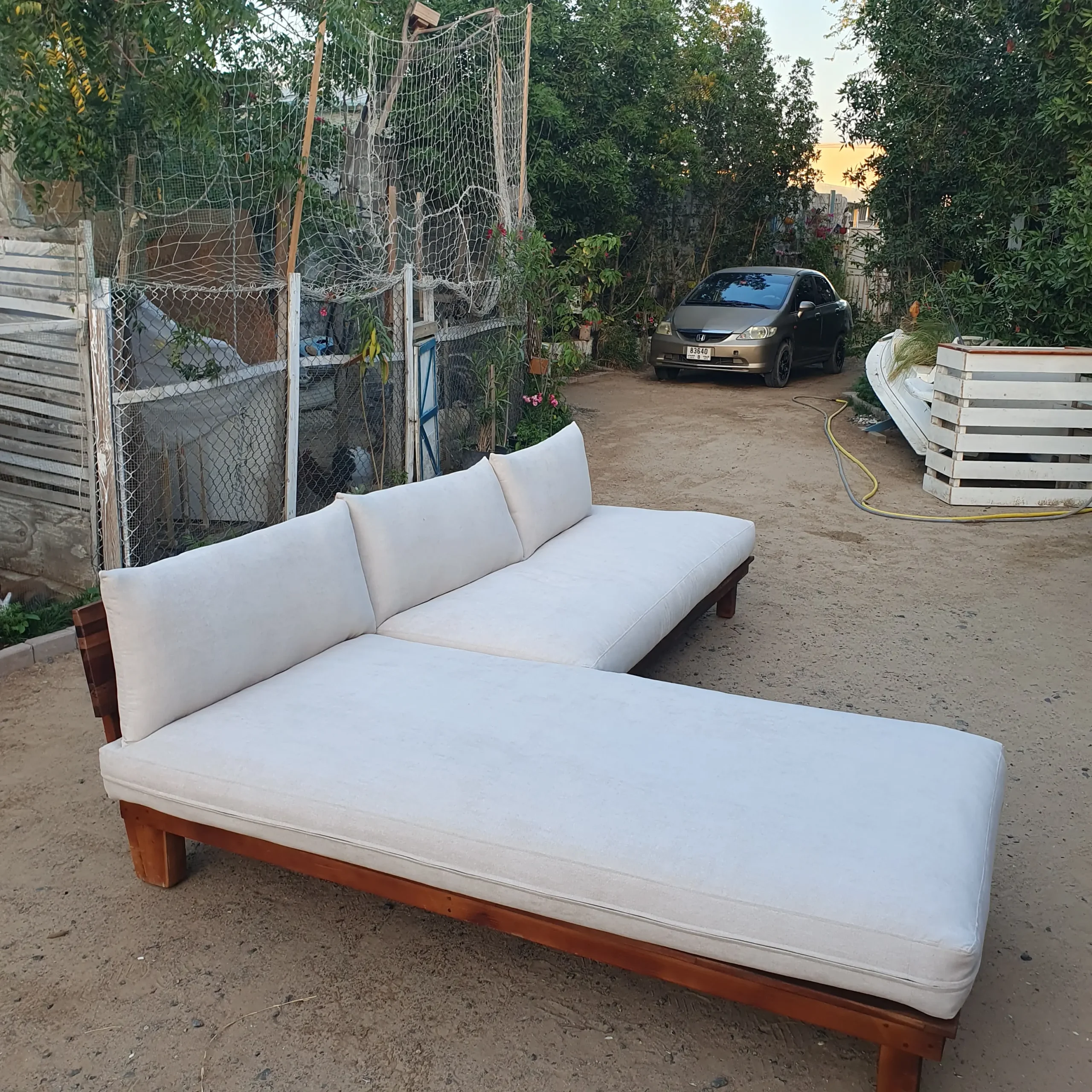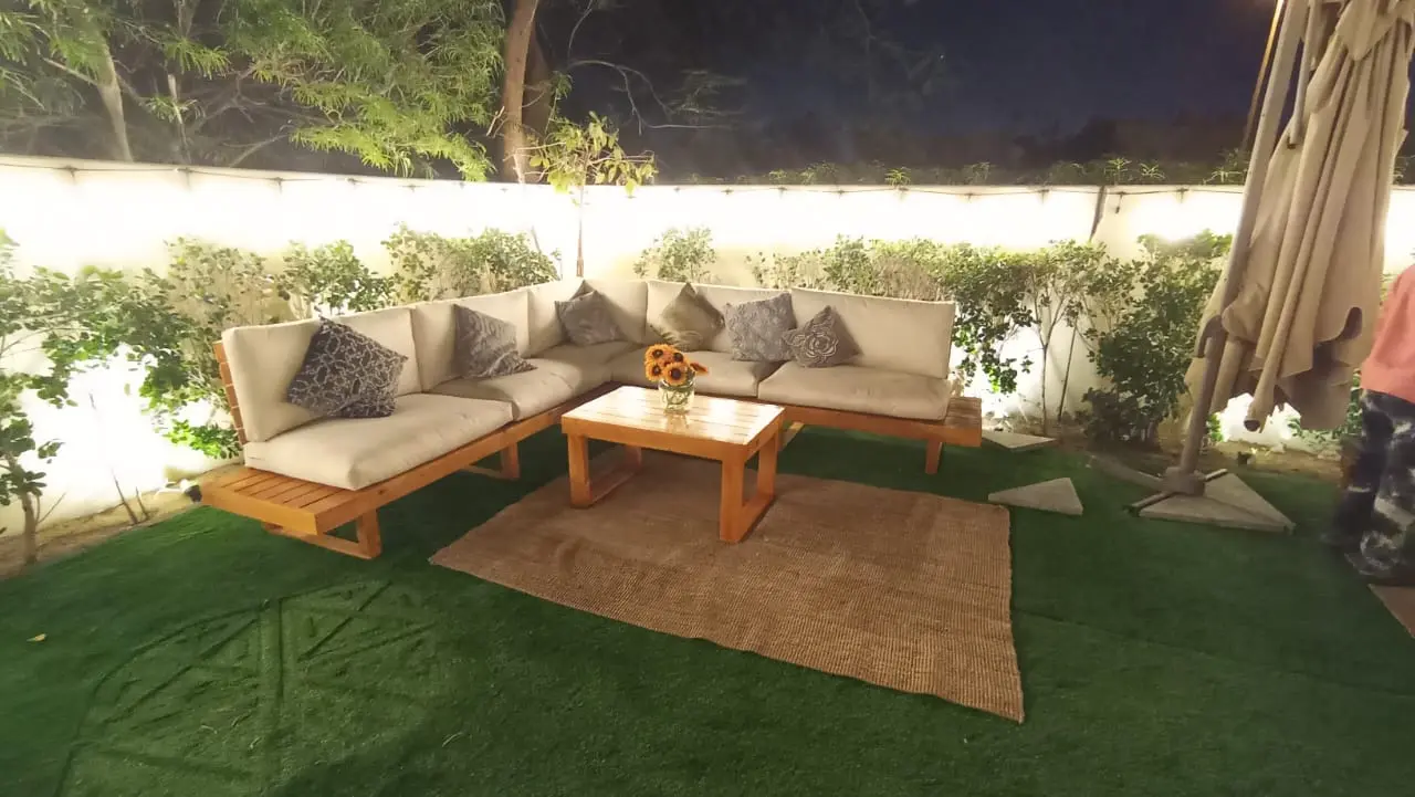 I know a lot of people are looking for amazing quality and well priced pallet furniture and I have found you the best company with Boats R Us and Prasad +971 55 494 5197 can help you make this type of furniture at an AMAZING price. This cost me under the price other companies were quoting of 3k and above with cushions. The best part; everything is customizable. Delivery is ofcourse separate.
